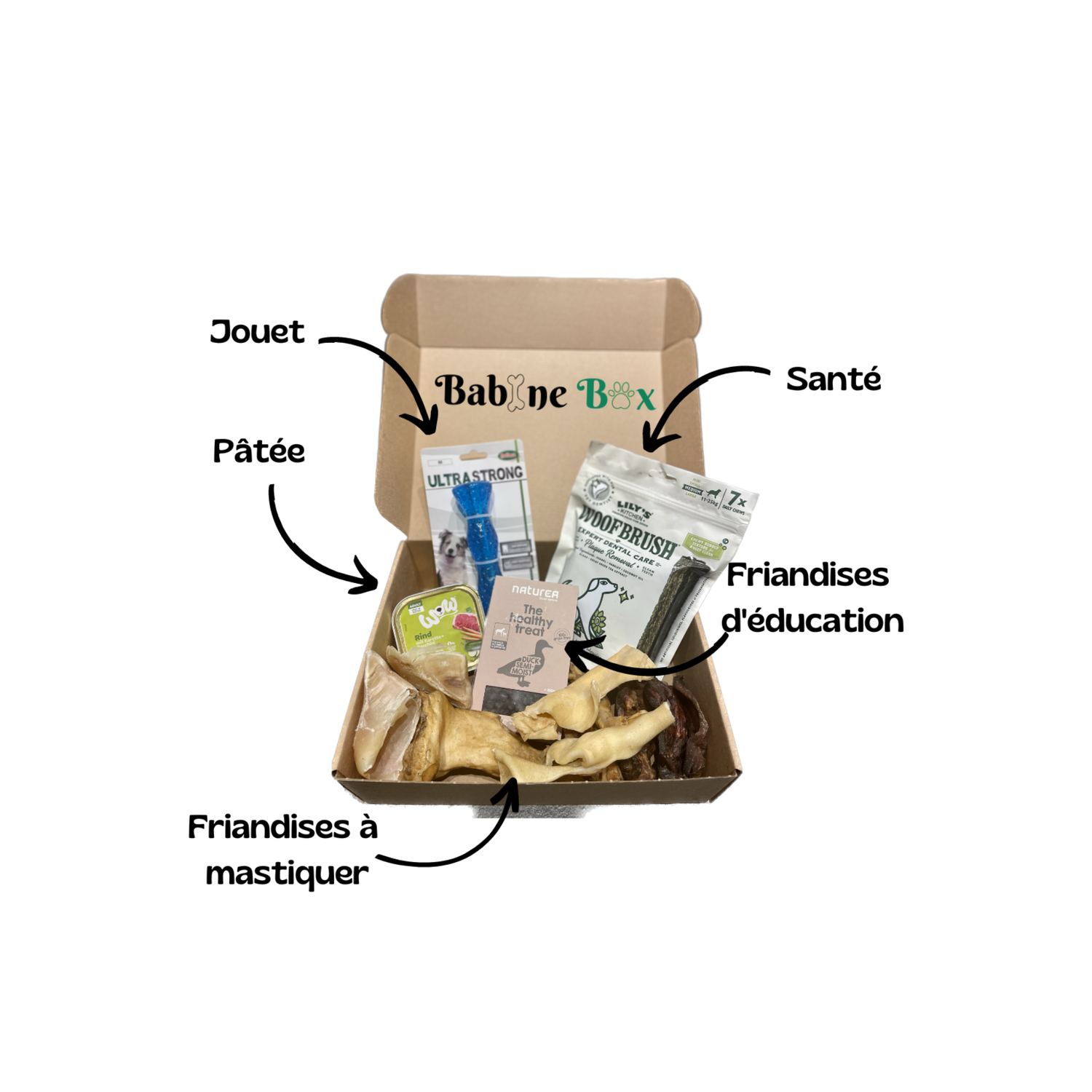 Vous y retrouverez également 1 jouet , 1 pâtée , 1 paquet de friandises d'éducation et d'autres surprises pour le plus grand plaisir de votre toutou.