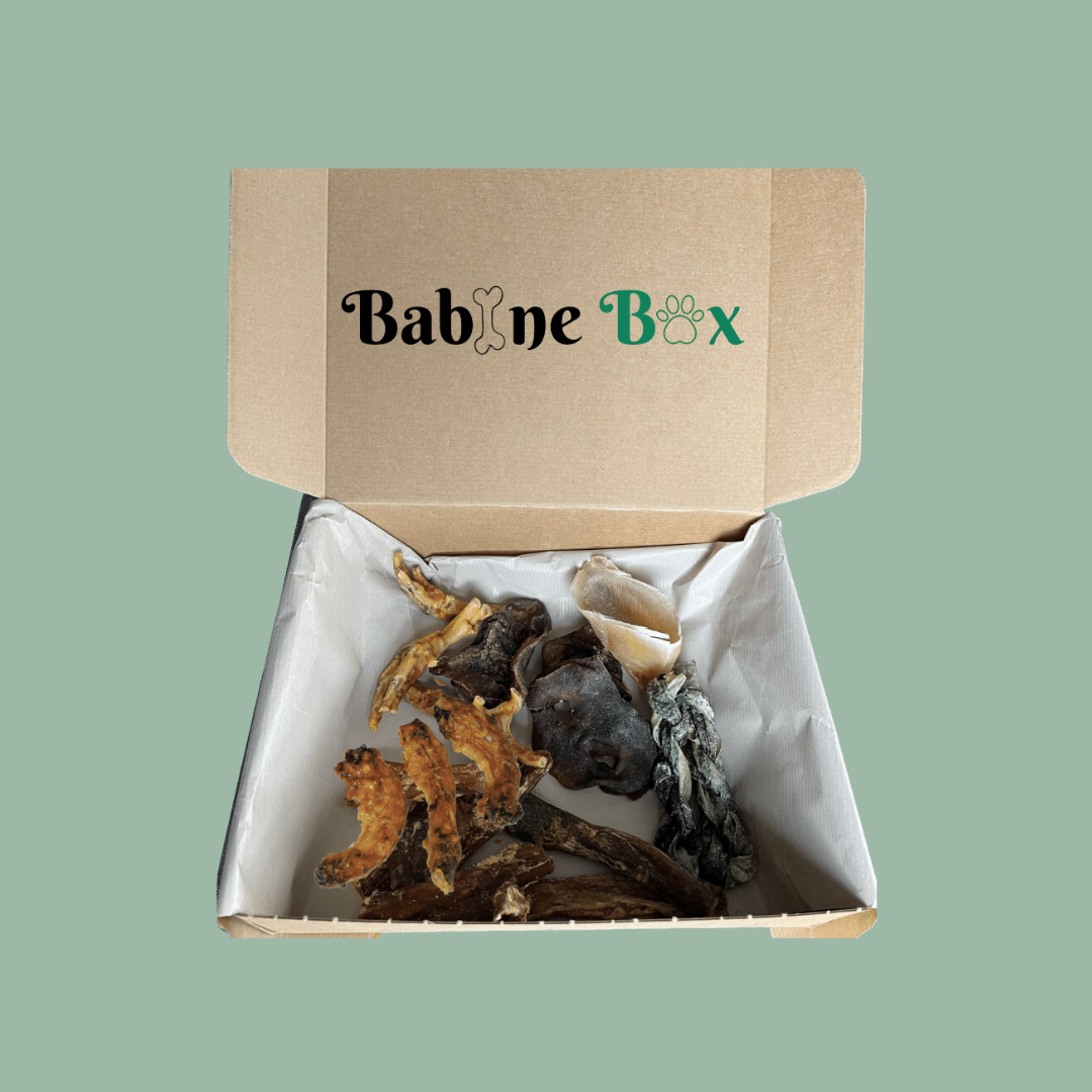 Box à mastiquer pour petits chiens ou petit mâchouilleur. Comporte environ 20 friandises de mastication naturelles. (Type estomac de poulet, cou de poulet, poumon de porc etc..) Si votre chien a des allergies veuillez m’en informer par mail après votre commande.